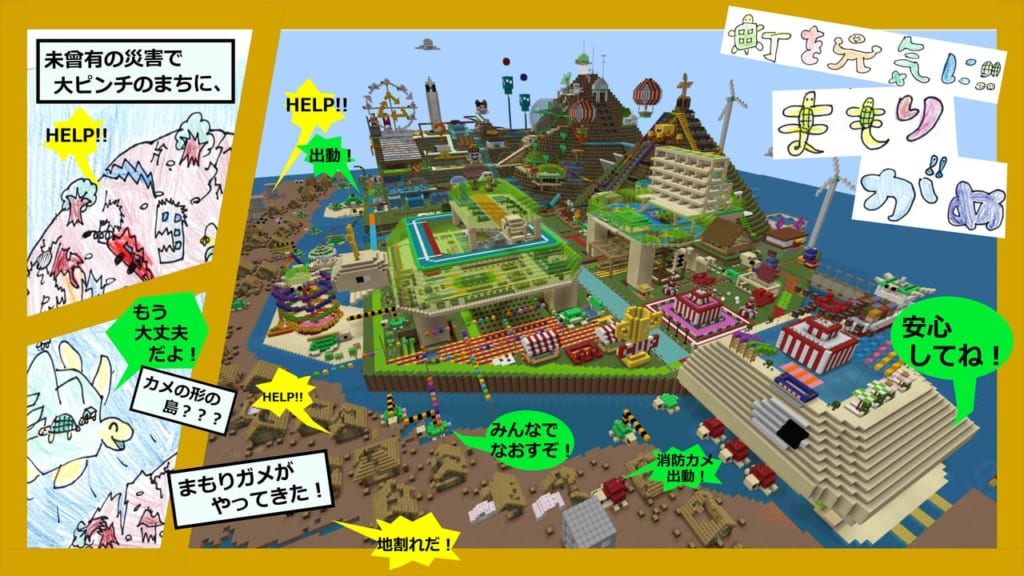 マインクラフトの世界で、あなたが思い描く未来のまちをデザインしてください。